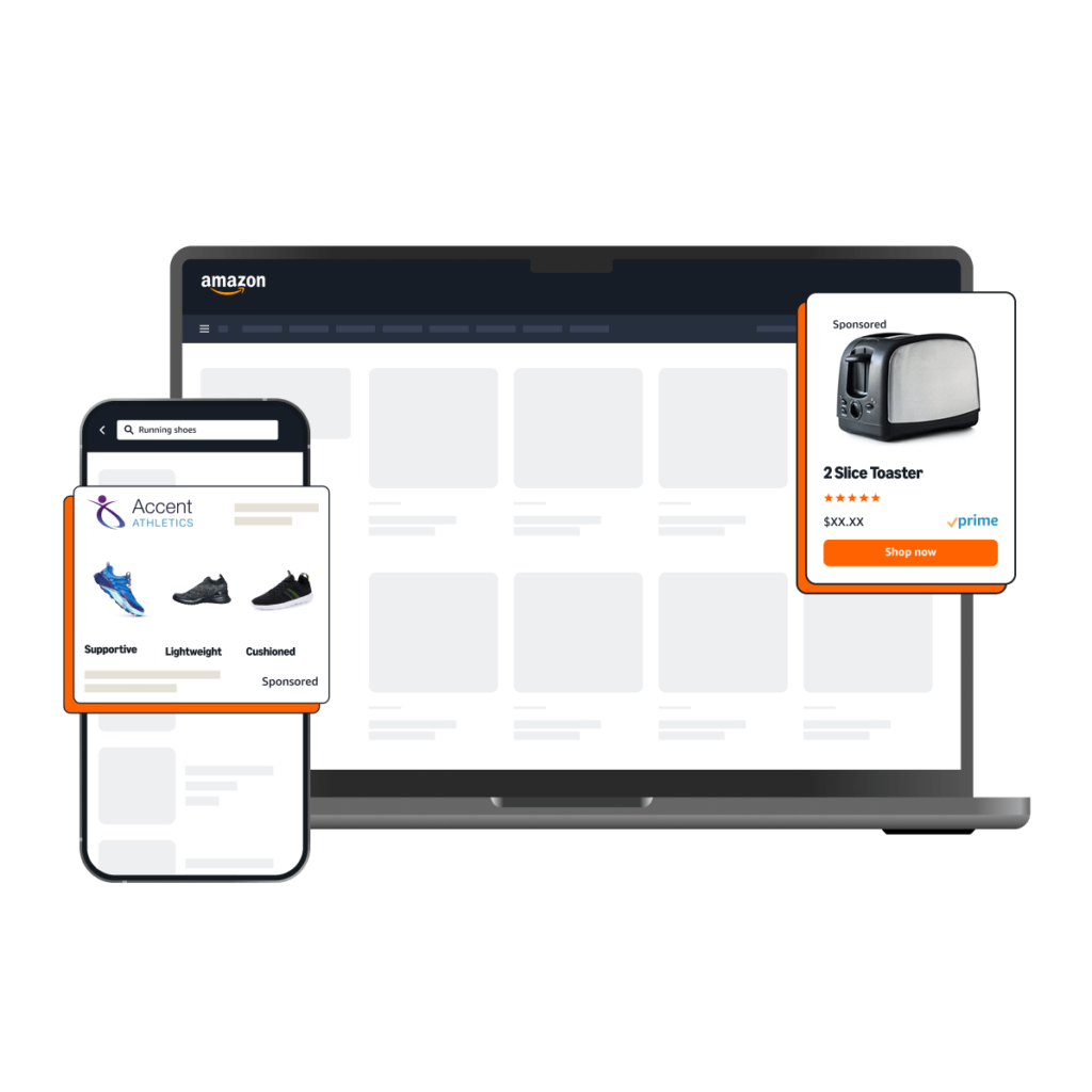 - Sponsored Products promote individual listings in search results and on product pages.
